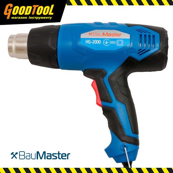 Технічний фен BauMaster HG-2000 - надійний інструмент призначений для зняття старої фарби і лаку, сушіння, формування пластику і розігріву замерзлих труб. Апарат обладнаний металевим нагрівальним елементом з споживаною потужністю в 2000 Вт. У моделі є можливість обрати один з 2 режимів регулювання потоку повітря і температури.