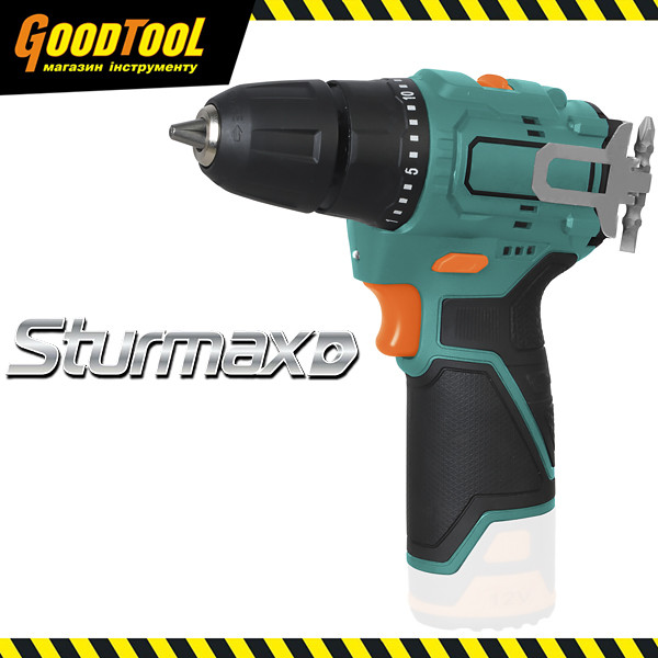 Увага! Комплектація шурупокрута Sturmax CDM3212CLB не включає акумулятор, зарядний пристрій, кейс.